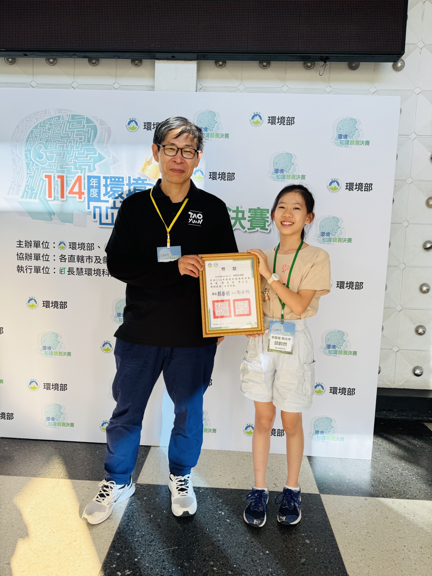 恭喜邱韵然同學以新北市代表身分出戰全國環境知識競賽,勇奪第三名佳績!